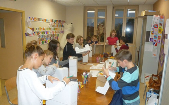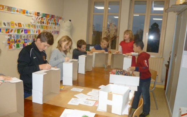 Les enfants du CME en sont responsables. Ils les ont construites avec application tant pour le montage que pour la décoration. Merci Pascal Perdrix pour avoir découpé les planches de récupération aux bonnes cotes. Les enfants ont utilisé des visseuses comme les adultes.