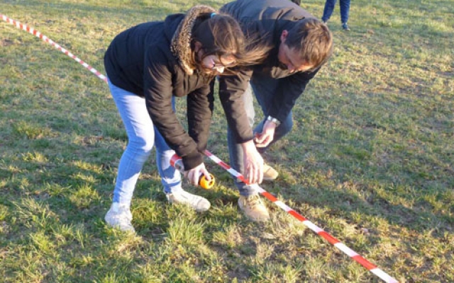 Réflexion sur un projet de circuit VTT. Plan du parcours. Piquetage et traçage sur le terrain. Projet en attente car il n’entrait pas totalement dans le budget . Cela montre aux enfants que tout n’est pas réalisable de suite.