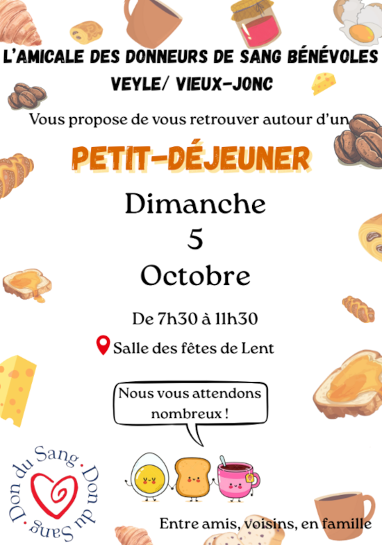 - Petit-déjeuner à la salle des fêtes de Lent le dimanche 5 octobre.