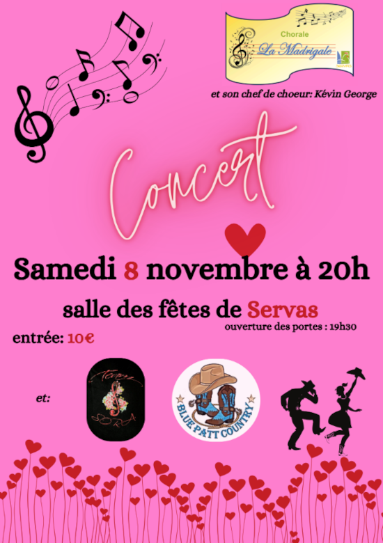 - 8 novembre : concert à la salle des fêtes de Servas.